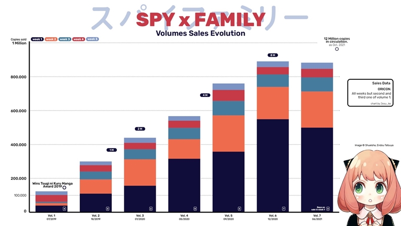 Trước công bố này, SPYxFAMILY là bộ Manga duy nhất nằm trong top 10 bán chạy của thập kỷ mà chưa có Anime chuyển thể!